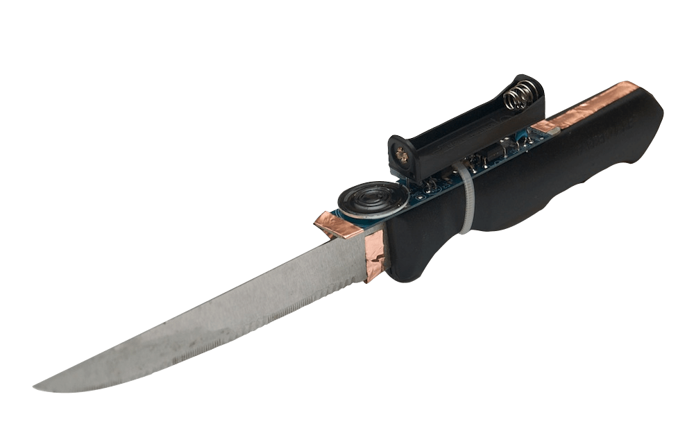 Have you ever wanted your food to shriek at you? The Syntheslicer is proof that a ridiculous pun is motivation enough for me to pursue a project. It's just a Drawdio attached to a knife instead of a pencil. Inexplicably, Make: Online named this one of their top 10 hacks of 2010.